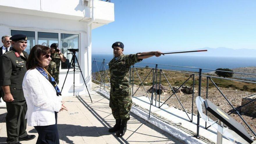 Greek President Catherine Sakellaropoulou has crossed the Aegean Islands into Turkey.