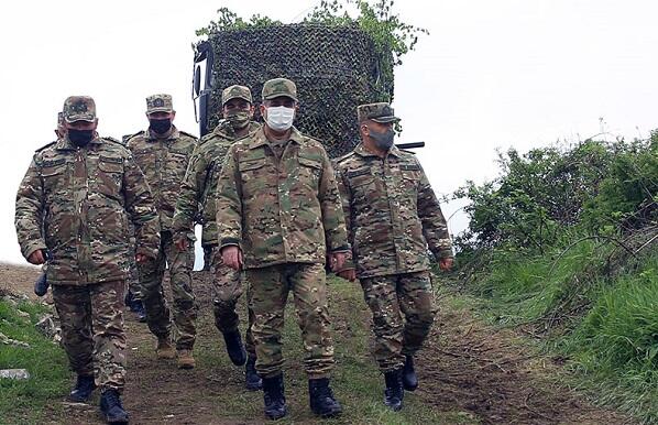 Axar.az reports citing MoD that the Minister of Defense got acquainted with the conditions created for the military personnel and inspected multifunctional radar stations, launchers, and other weaponry on combat duty in the area.