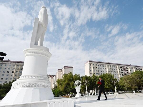 Axar.az reports that the head of state first visited the monument to national leader Heydar Aliyev in the city center and laid a wreath.
