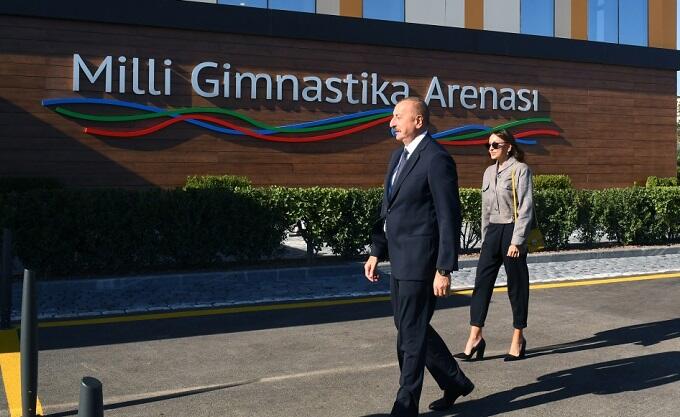 On October 22, President of the Republic of Azerbaijan Ilham Aliyev, First Lady Mehriban Aliyeva and their daughter Leyla Aliyeva got acquainted with the conditions created in the new training building of the National Gymnastics Arena.