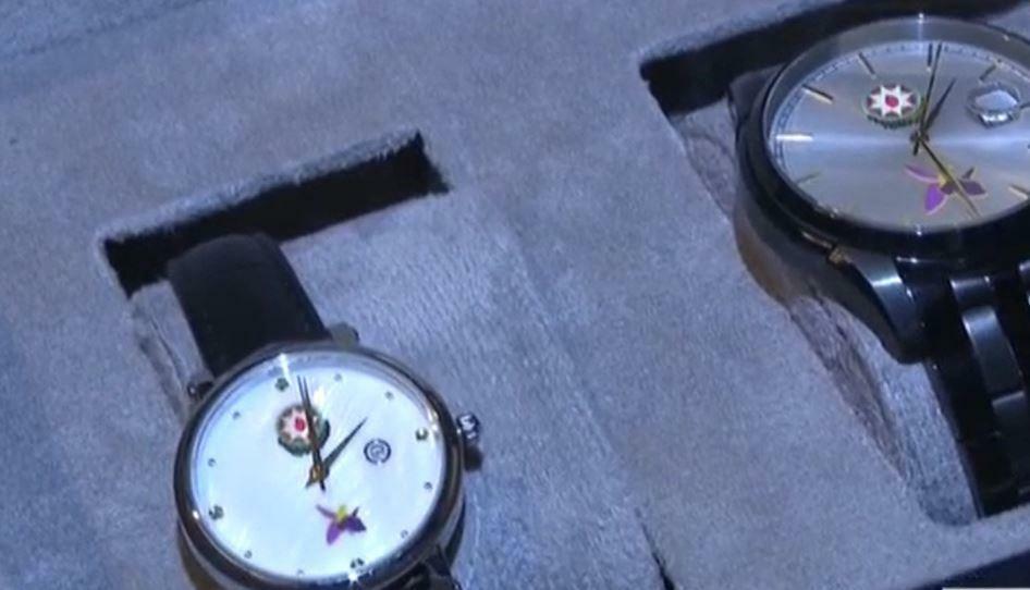 President Ilham Aliyev said: "Thank you. Come and take a closer look. My dear brother gave me these beautiful watches. The image of Kharibulbul is also on it."