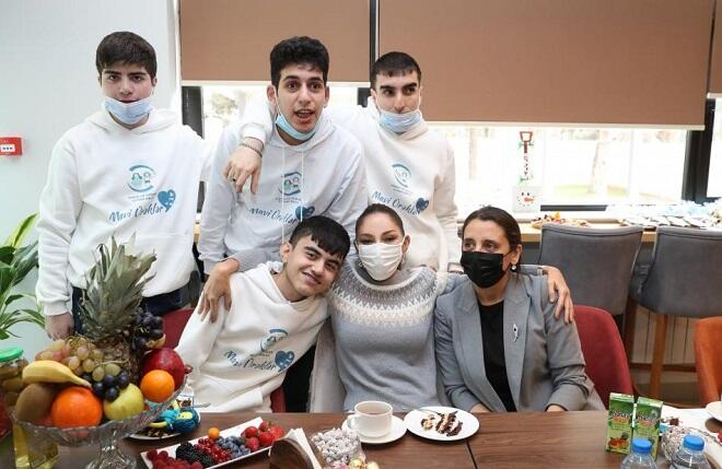 After viewing the building, First Vice President Mehriban Aliyeva, daughters Leyla Aliyeva and Arzu Aliyeva met with children with autism spectrum disorders.