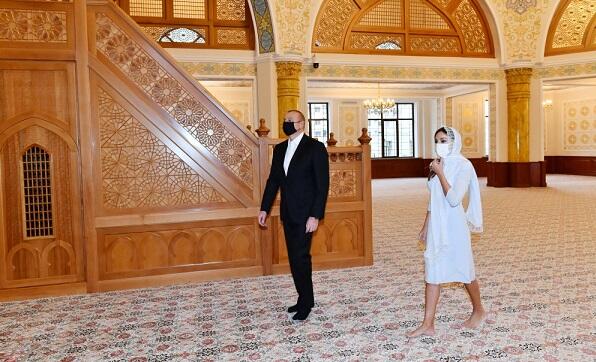 President of the Republic of Azerbaijan Ilham Aliyev and First Lady Mehriban Aliyeva have inspected the conditions created in the new building of the Khanim Fatimeyi Zahra Mosque in the Yeni Gunashli settlement of the Surakhani district of Baku.