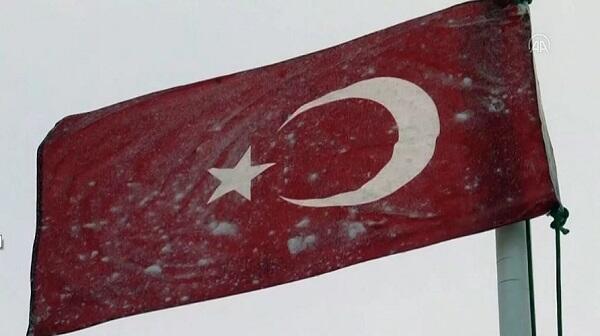 As a result of heavy snowfall in Turkey, the Turkish flag froze at the Igidler border checkpoint in the Ardahan steppe.