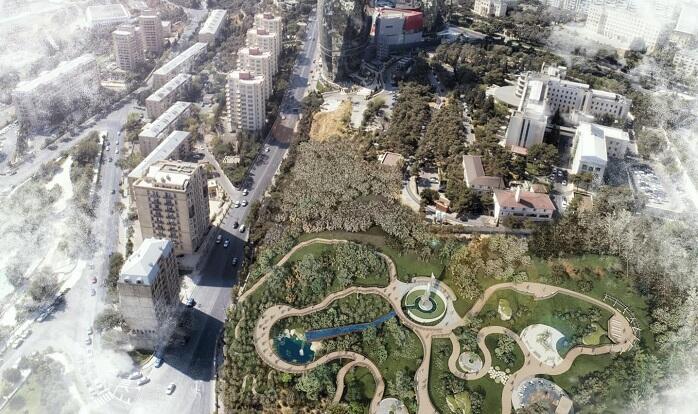 Images of what will be the park under construction near the Flame Towers complex have been spread in Baku.