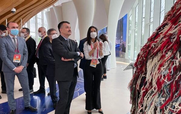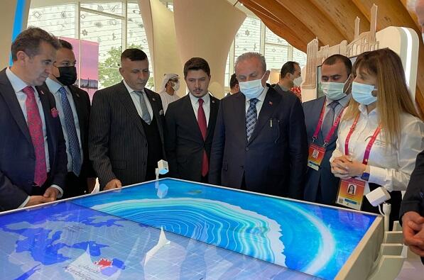 Speaker of the Turkish Grand National Assembly Mustafa Shantop and Minister of Agriculture and Forestry Bekir Pakdemirli visited the Azerbaijani pavilion organized by the Heydar Aliyev Center at the Dubai Expo 2020 world exhibition as part of their visit to the United Arab Emirates.