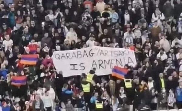 Axar.az reports that group of Armenian fans at the stadium unveiled a provocative poster during the match. The poster was removed after the stadium's security forces intervened.