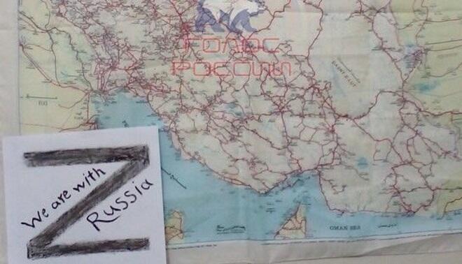 Axar.az reports that the embassy shared photos of cars with the letters "Z" and the Iranian flag, claiming that the Iranians held a flash mob in support of the Russian army with the "Z" sign.