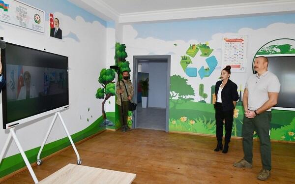 During their visit to Zangilan region, President Ilham Aliyev and First Lady Mehriban Aliyeva also got acquainted with the village secondary school in Aghali village.
