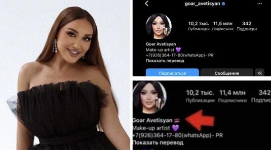 Gohar Avetisyan, a well-known Armenian make-up artist, citizen of Russia, who has more than 11 million followers on Instagram, removed the Armenian flag from his page.