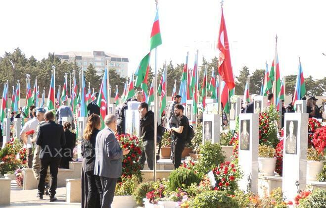 Axar.az reports that in connection with Memorial Day, public representatives, officials, military personnel and families of martyrs are visiting the Alley of Martyrs II.