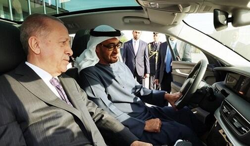 The UAE leader sat in the car together with Erdogan.