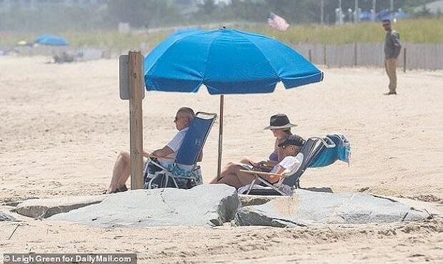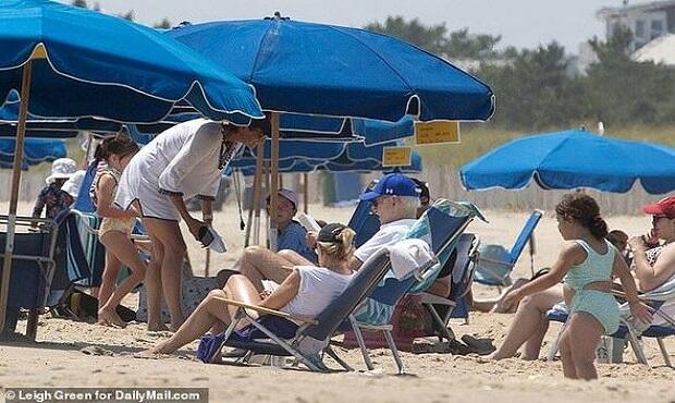 US President Joe Biden was seen relaxing on the beach near his home in Delaware with his wife Jill and 22-year-old grandson Finnegan on Saturday.