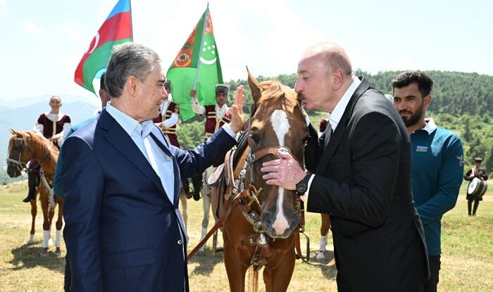 President Ilham Aliyev gifted Gurbanguly Berdimuhammedov a Karabakh horse named “Dostluq” (Friendship).