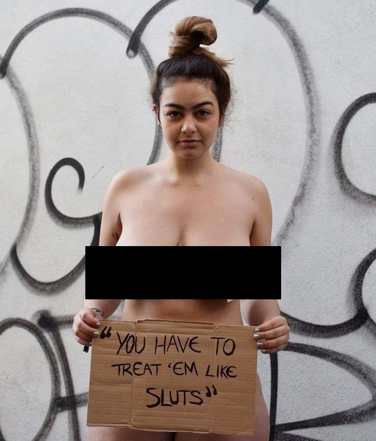 Emma, of Fritwell, Oxfordshire, said: "Last week I produced and executed a photo shoot, taking a feminist/protest approach by writing sexist quotes made by Trump onto scrap pieces of cardboard, and having women pose 'nude' in the aim to empower women."