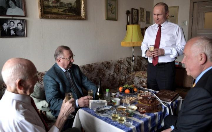 Vladimir Putin has joined former KGB colleagues to celebrate the birthday of their former boss in the Soviet secret service.