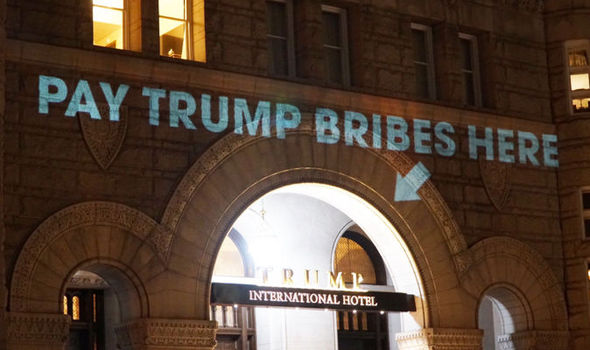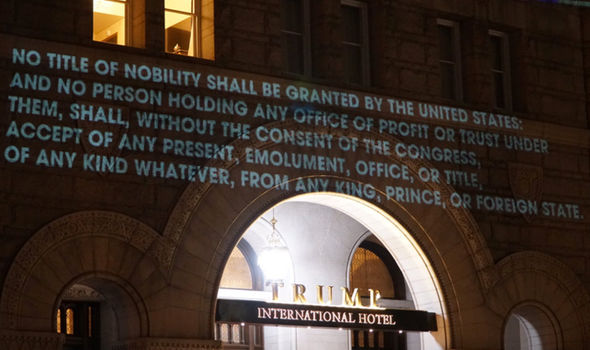 Other images emerged on social media showed a projection of the emoluments clause of the US constitution, which prohibits federal officials from taking payments from foreign governments.