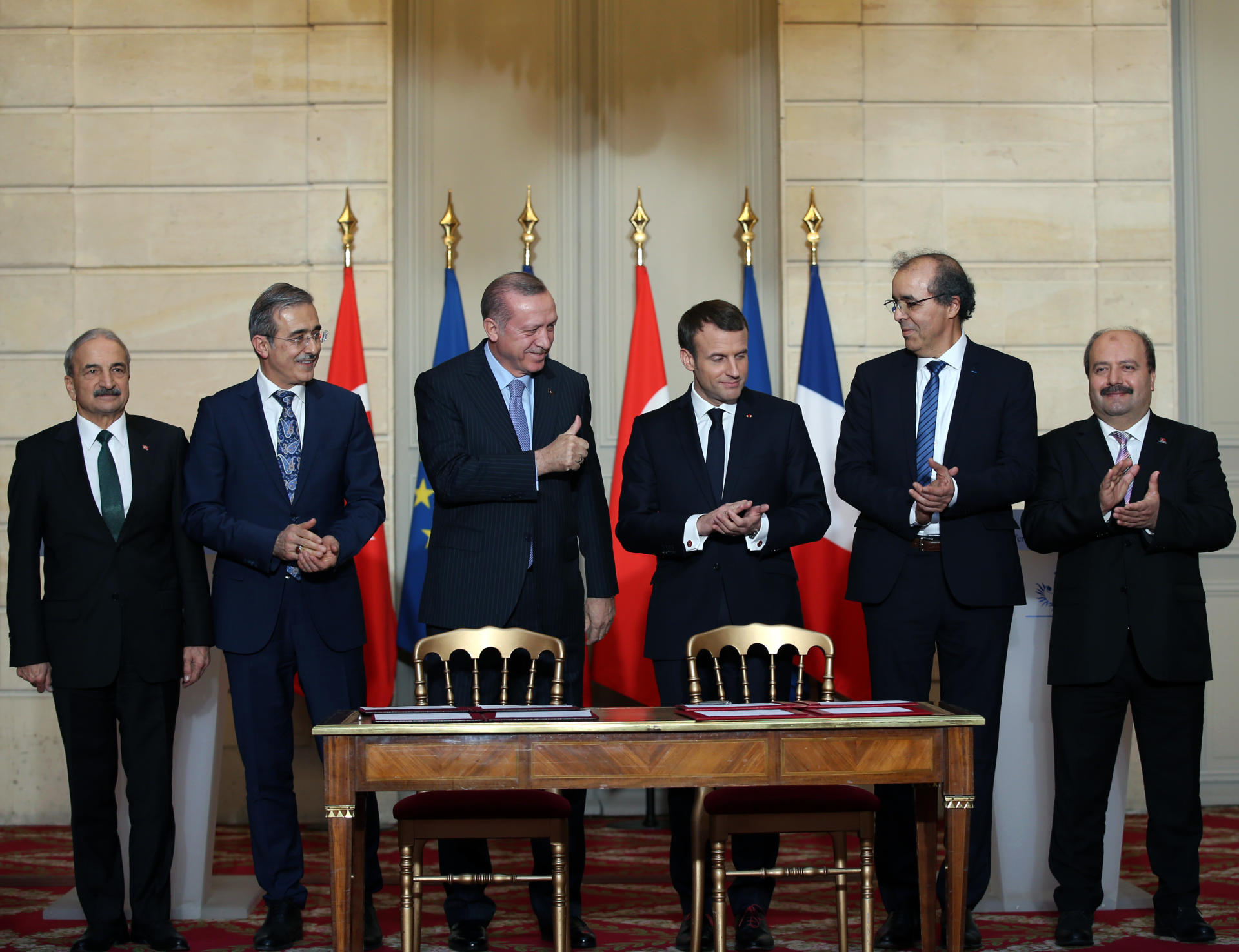 Erdogan was accompanied by Turkish Foreign Minister Mevlut Cavusoglu, Energy Minister Berat Albayrak, EU Minister Omer Celik and Defense Minister Nurettin Canikli during his one-day visit to France.