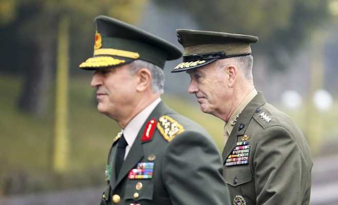 Gen. Joseph Dunford, chairman of the U.S. Joint Chiefs of Staff, spoke with his Turkish counterpart Gen. Hulusi Akar over the phone early Saturday, according to the Pentagon.
