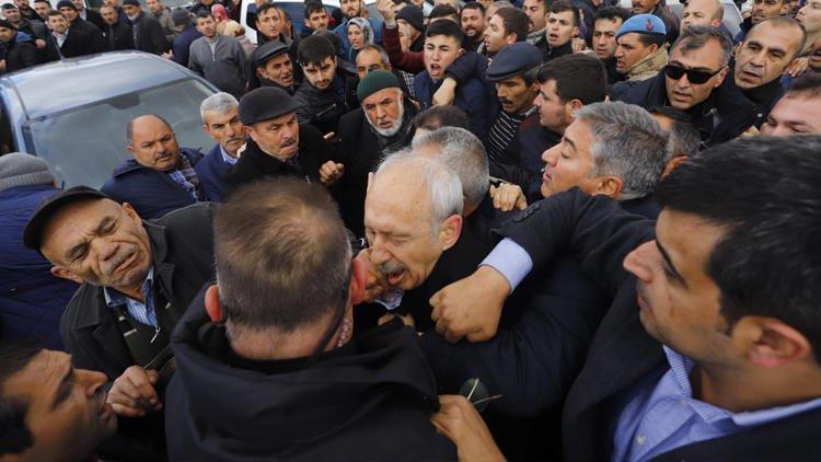 Republican People's Party (CHP) chief Kemal Kilicdaroglu was set upon by an angry crowd while attending a memorial on Sunday.