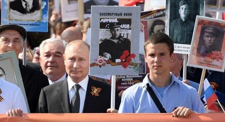 Russian President Vladimir Putin took part in the Immortal Regiment march in Moscow to commemorate those who fought or died in the Soviet Union’s Great Patriotic War against Nazi Germany in 1941-1945.