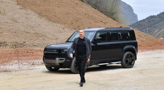 Axar.az reports the President and First Lady got acquainted with the construction of the Horadiz-Jabrayil-Zangilan-Agband highway in the Fizuli region. and took part in the groundbreaking ceremony of the Jabrayil power junction.