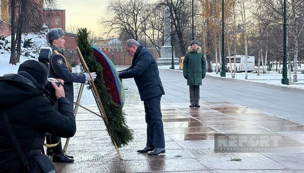 Azerbaijani Foreign Minister Jeyhun Bayramov, who is on a business trip to Russia, laid a wreath in front of the tomb of the unknown soldier located near the Kremlin walls.