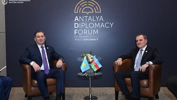 The Minister of Foreign Affairs of the Republic of Azerbaijan Jeyhun Bayramov met with the Deputy Prime Minister of the Republic of Kazakhstan, Minister of Foreign Affairs Murad Nurtleu at the Antalya Diplomacy Forum.