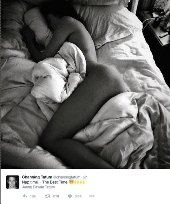Channing Tatum shared a naked snap of his wife [Jenna Dewan-Tatum] sleeping.
