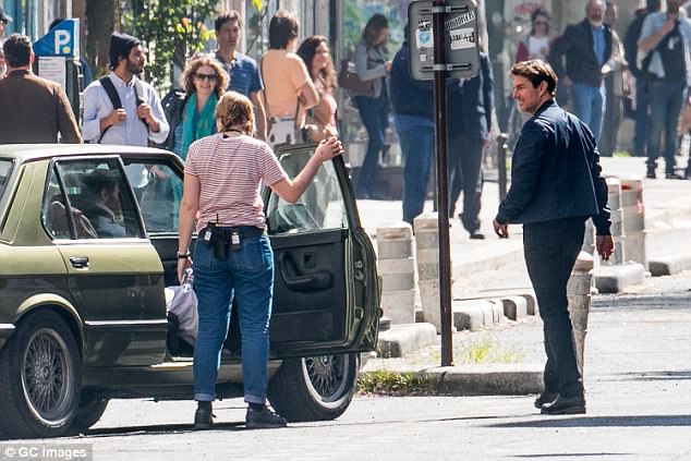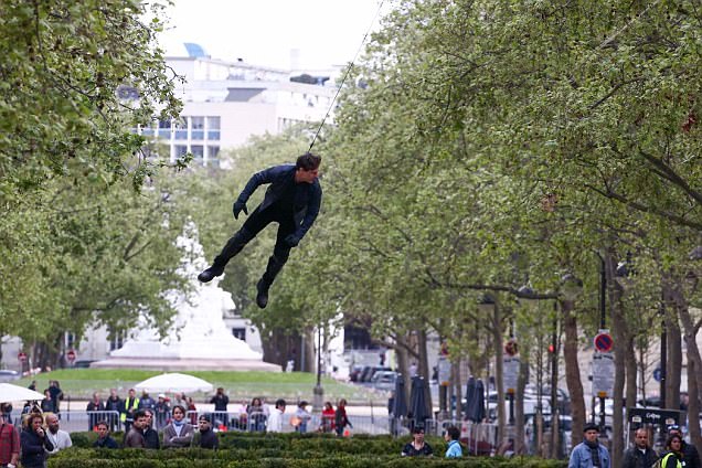 The pictures themselves show Tom Cruise and fellow actor Sean Harris filming on the rooftop of the French Ministry of Finance.