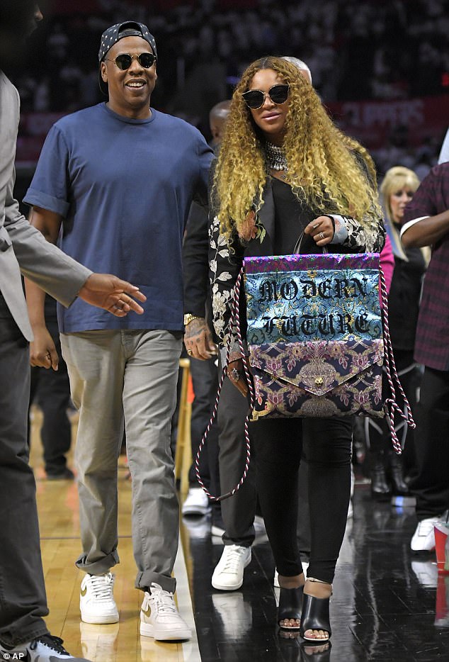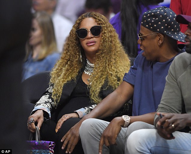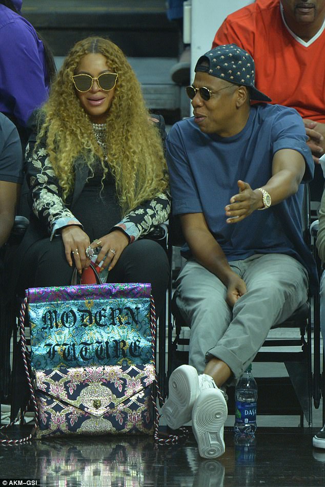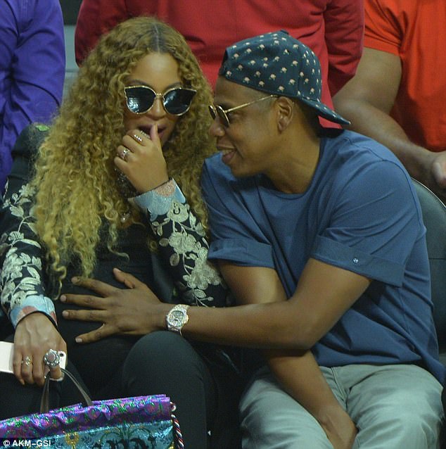 Jay Z and pregnant Beyonce attended basketball match while their photos were taken.