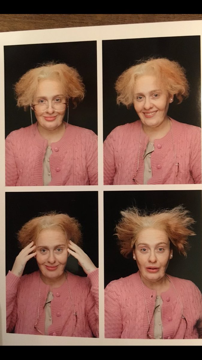 Wearing a beige blouse, pink cardigan, and glasses, along with a ginger wig, prosthetics to complete her 'senior' makeover Adele once again showed that she's not afraid of embarrassing herself.