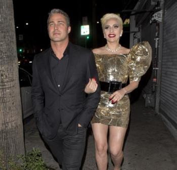 Gaga, who officially turns 30 on Monday, arrived in a gold, sequined mini dress with her fiance, Taylor Kinney. The party was held at the at the No Name Club in West Hollywood.