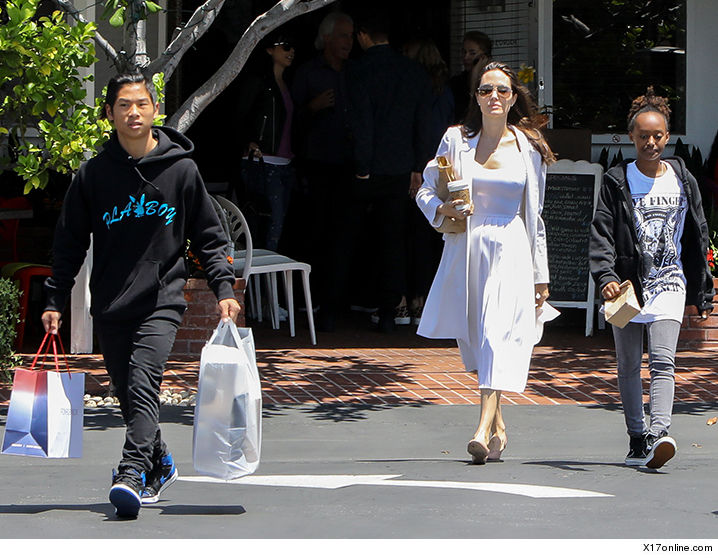 Axar.az reports citing TMZ, Angie hit up Fred Segal Thursday afternoon in WeHo with 12-year-old Zahara by her side. The strapping young man carrying the shopping bags is, believe it or not, 13-year-old Pax.