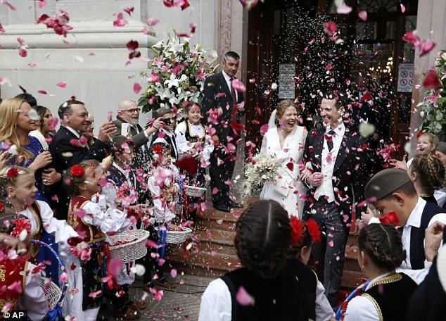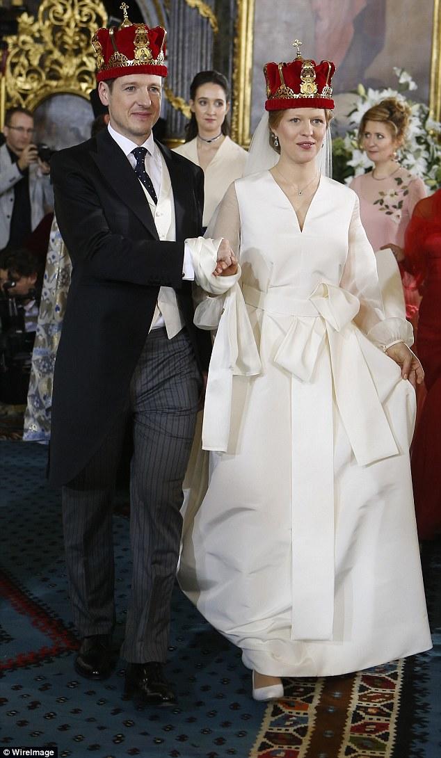 The happy couple wore elaborate crowns as they exchanged their vows during a traditional ceremony at the city's cathedral.