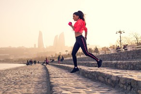 Azerbaijani representative at the upcoming Eurovision Song Contest 2016, films her postcard ready for the contest.