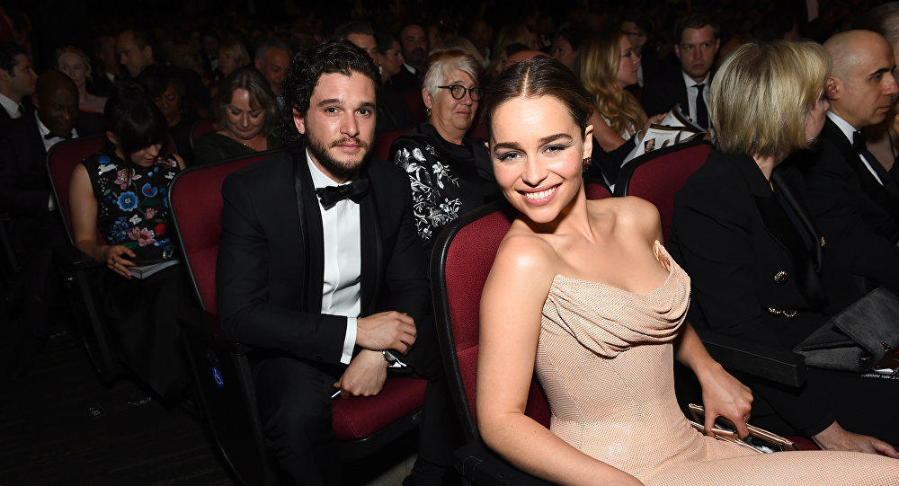 The GOT colleagues made a perfect colour match as Clarke was wearing a gorgeous red maxi skirt and Harington chose to put on a black ensemble comprising a smart suit and a fitted black sweater with matching velour shoes, just a day after the drunk-fueled row over the pool table.