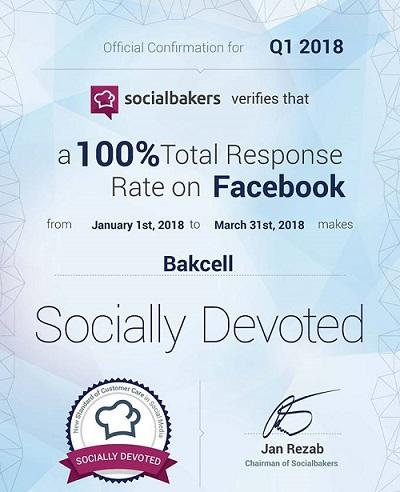 “Socialbakers” being a well-known company engaged in monitoring social network activities of the large companies all over the world by means of a special analytics platform, has reviewed the “Facebook” activities of Azerbaijani companies during the first quarter of the year 2018. According to results of this monitoring, the company has responded to 100% of customer inquiries on its official “Facebook” page in the period from January to March of the current year. It should be noted that last year Bakcell was awarded with four “Socially Devoted” certificates, based on rate of responses to the customer questions on “Facebook” social network. What makes this achievement even more admirable is the fact that the official Bakcell page on Facebook has well-over 400 000 followers.