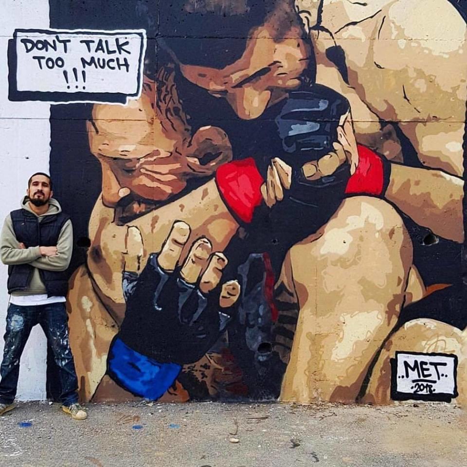 Axar.az reports that the street art depicts the moment McGregor tapped out during a chokehold by Nurmagomedov during their UFC 229 bout at T-Mobile Arena in Las Vegas. The graffiti also includes a speech balloon reading, "Don't talk too much" – an apparent reference to McGregor's verbal attacks on Nurmagomedov, insulting his father, religion and homeland Dagestan.