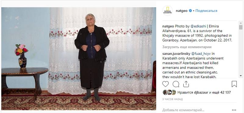 The page of the world-famous National Geographic (@natgeo) channel on social networks published information about an Azerbaijani woman who miraculously managed to get out alive after the Khojaly massacre perpetrated by Armenian armed units in 1992.