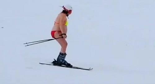 A pregnant woman from the Siberian city of Novosibirsk has become a social media star virtually overnight after a video of her rocketing down a slope wearing nothing but a two-piece and a helmet hit the internet.