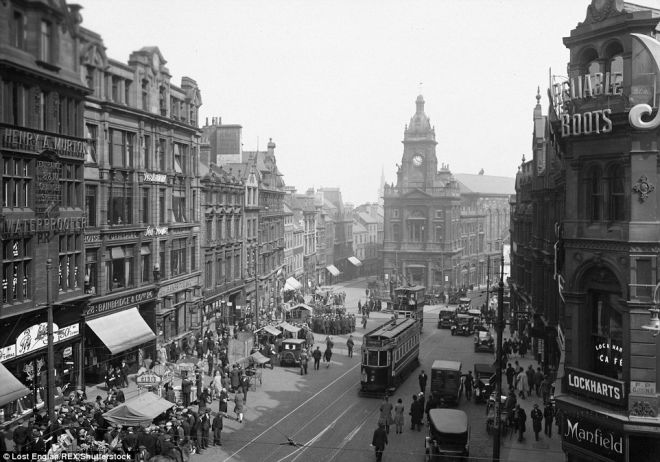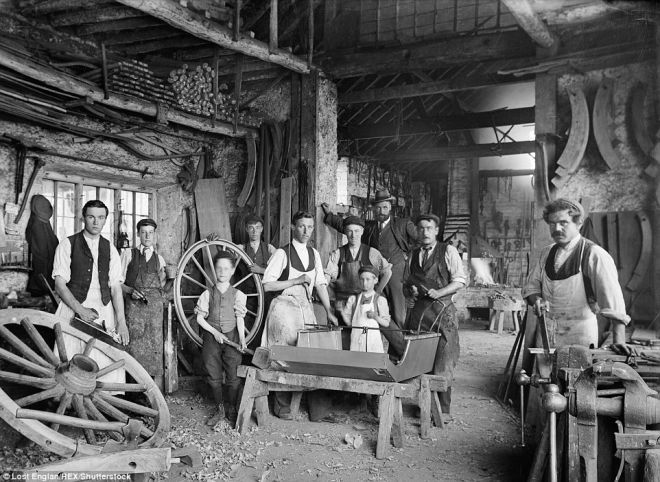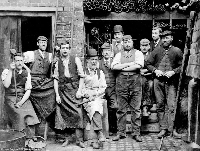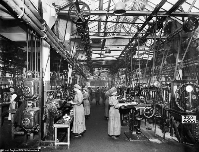The British labour force is particularly well documented with stunning photos showing builders working on the Manchester Ship Canal in 1889, traders at Newcastle's Bigg market in 1920 and female munitions factory workers building bombs in 1917.