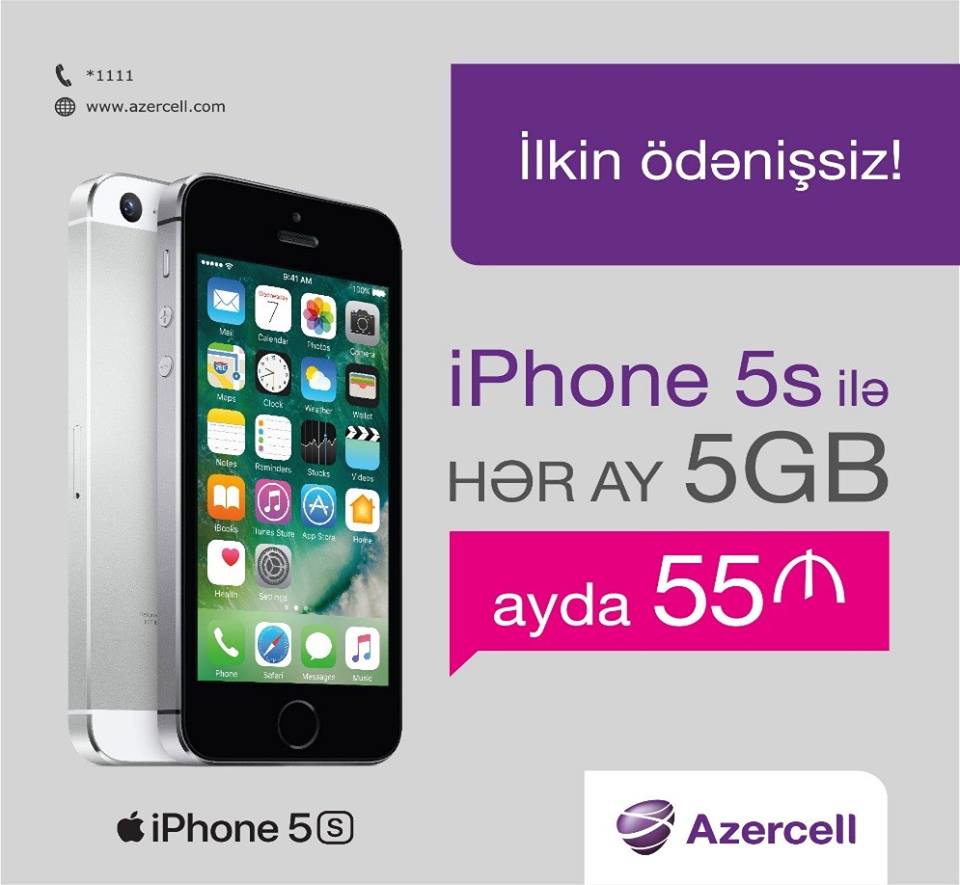 Azercell Telecom LLC continues to make high speed internet service available for its subscribers by offering the devices with favorable terms. The company has launched a new campaign for its 4,5 million subscribers. Thus, starting from May 1, 2017, Azercell offers 4G backed Iphone 7 and Iphone 5S for AZN 89+ and AZN 55+ respectively, under the “1001 Smartphone” campaign. In addition, the company provides an opportunity to enjoy large volume data (5GB/10GB/Unlimited) and favorable call charge (AZN 0,06/min) as a present.