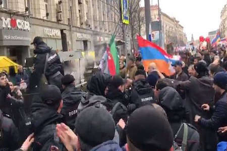 During another Immortal Regiment march in Moscow, representatives of Armenian Diaspora carried the flag of so-called separatist regime and shouted “Artsakh”. Near the Belarusskaya subway station, a conflict occurred between Armenians and young activists of Azerbaijani Diaspora.