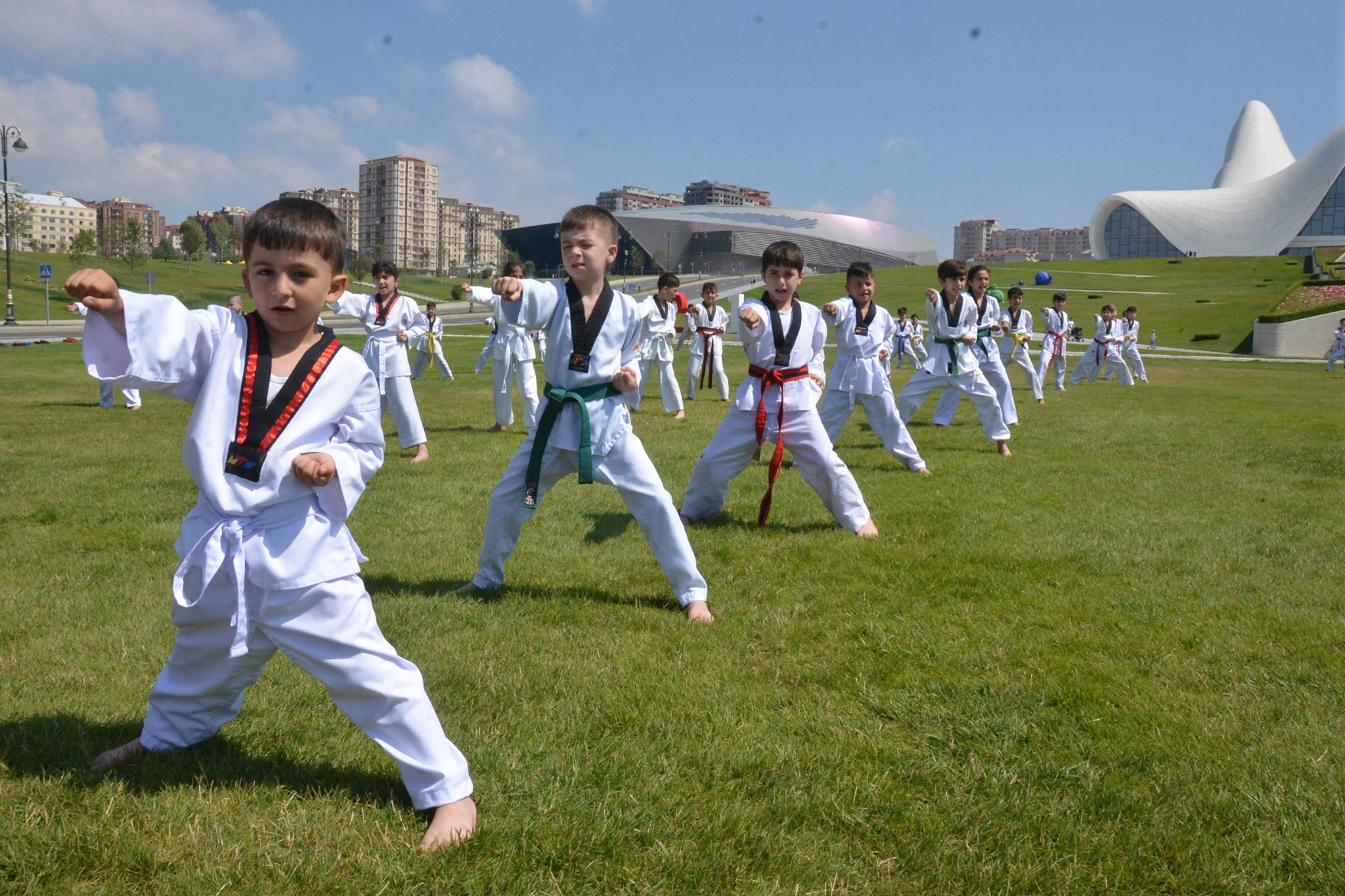 A taekwondo master-class is held in the park of Heydar Aliyev Center.