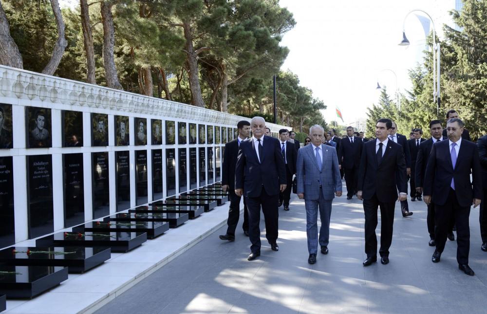 Gurbanguly Berdimuhamedow President of Turkmenistan has visited the Alley of Honors to lay a wreath at the tomb of national leader, founder and architect of modern Azerbaijani state Heydar Aliyev on the 8th of August.