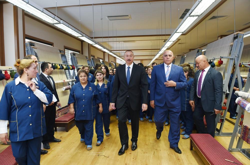 After touring the branch, President Ilham Aliyev met with carpet-weavers.