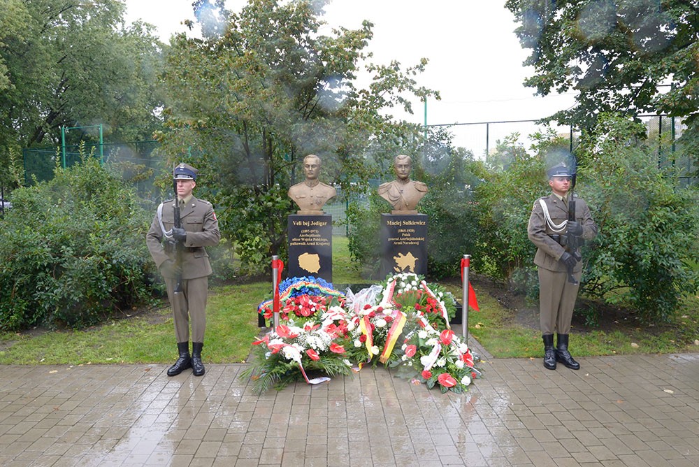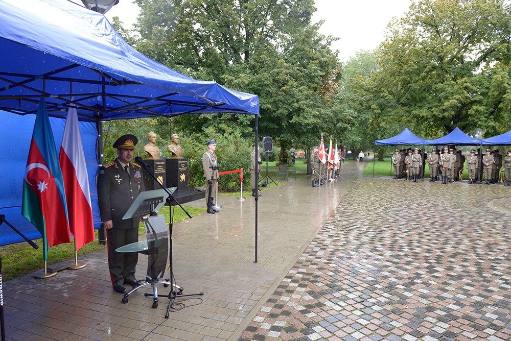 The Minister of Defense of Azerbaijan, Colonel General Zakir Hasanov, who is on a visit to the Republic of Poland, took part in the opening of the monument erected in Warsaw in memory of military figures of the period of the Azerbaijan Democratic Republic Lieutenant-General Suleiman Bey Sulkevich and Colonel Veli Bey Jedigar.