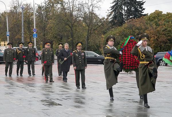 The delegation of the Ministry of Defense of Azerbaijan, led by the Minister of Defense, Colonel General Zakir Hasanov visited the Victory Square in Minsk on October 9. According to tradition, the head and members of the delegation paid tribute to the memory of the soldiers and laid a wreath and flowers at the Victory Monument.