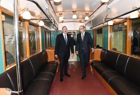 President of Azerbaijan Ilham Aliyev became acquainted with retro trains, modernized in connection with the 50th anniversary of Baku Metro.